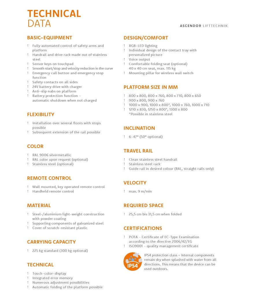 The Ascendor PLG7 & PLK8 platform stair lift proves itself in both public and private use. Particularly robust materials and user-friendly technologies make it an all-purpose solution for wheelchair users and people with limited physical ability. You may also use it with a rollator, as a comfortable seat lift (thanks to the fold-out seat) or for the transport of heavy objects.